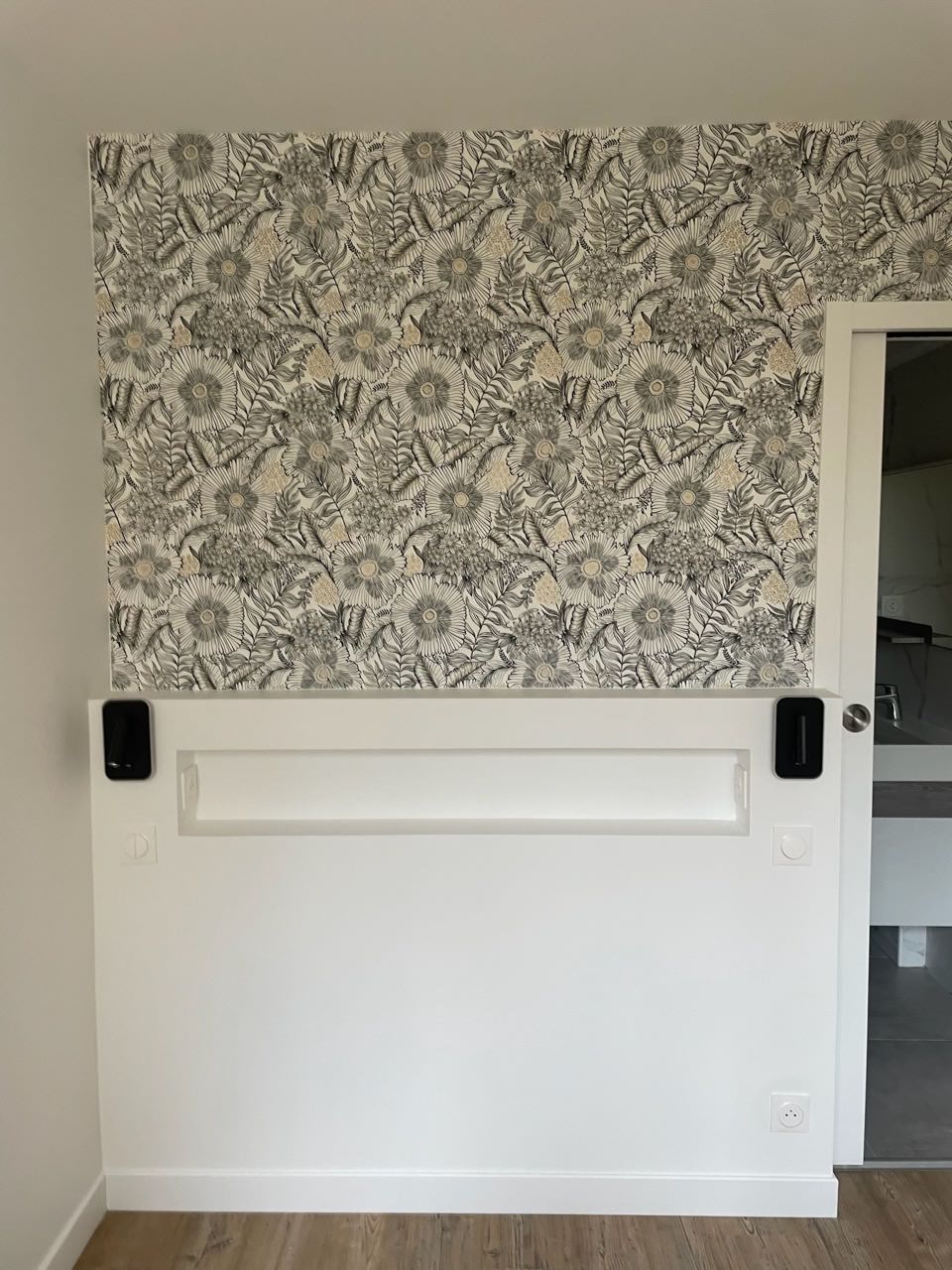 Une attention particulière a été portée à l'optimisation de l'espace, avec l'intégration d'une buanderie dissimulée dans une armoire et une entrée dotée de placards individuels pour chaque occupant. En tenant compte des contraintes structurelles, nous avons décloisonné la pièce à vivre, en utilisant habilement les piliers existants pour délimiter l'entrée et l'une des chambres.
